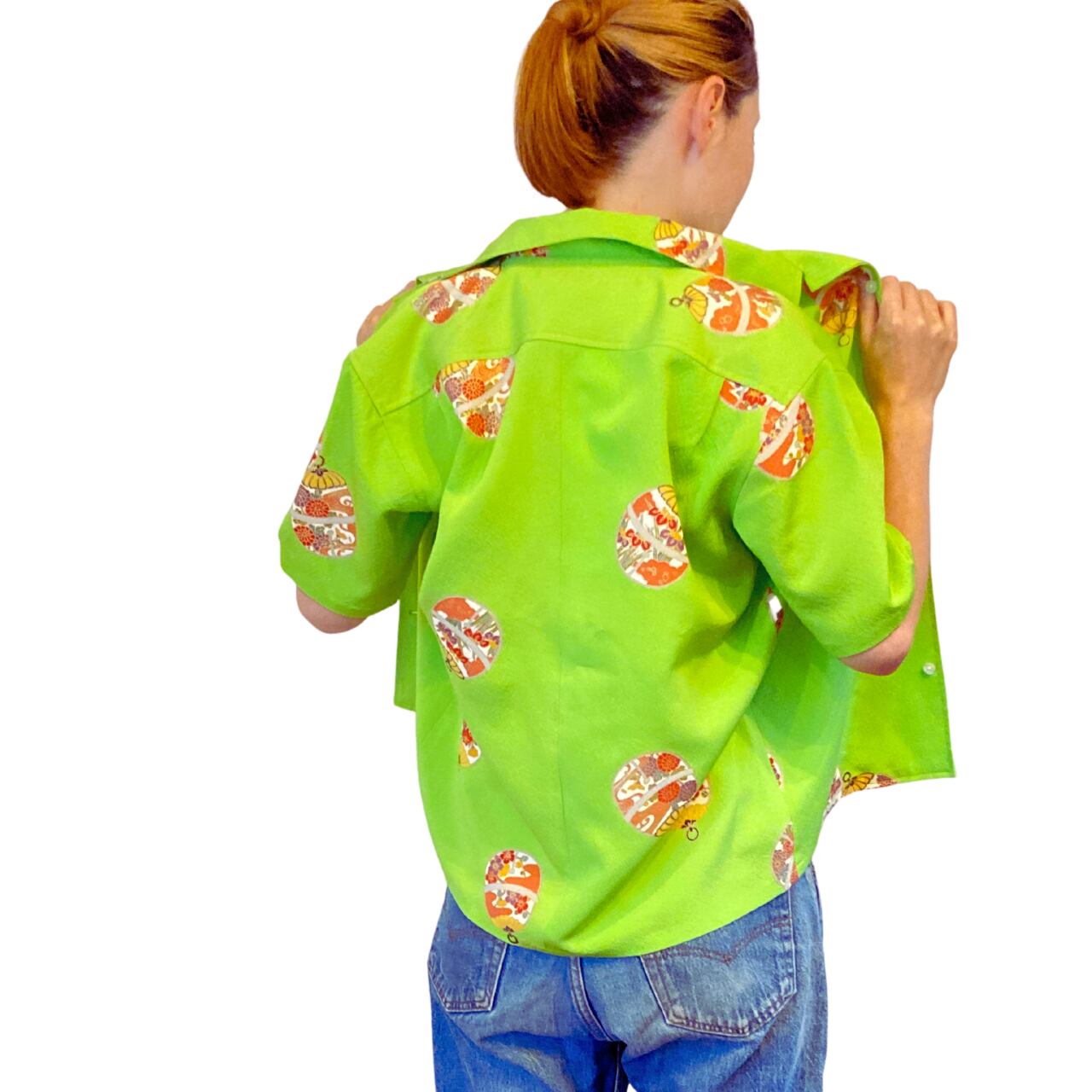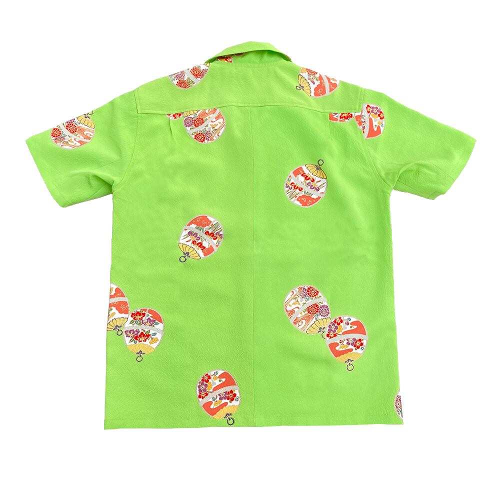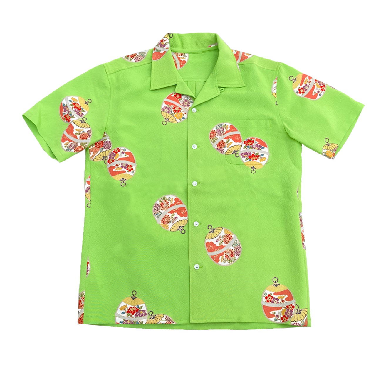 【1点物】No1. 今治アロハ 古典柄と鈴の刺繍 #魔除け、#お守り #加護 正絹100% アロハシャツ メンズ レディース ユニセックス 正絹100% 男性用 女性用 半袖 トップス 旅行 リゾート 総柄 かっこいい おしゃれ 還暦祝い